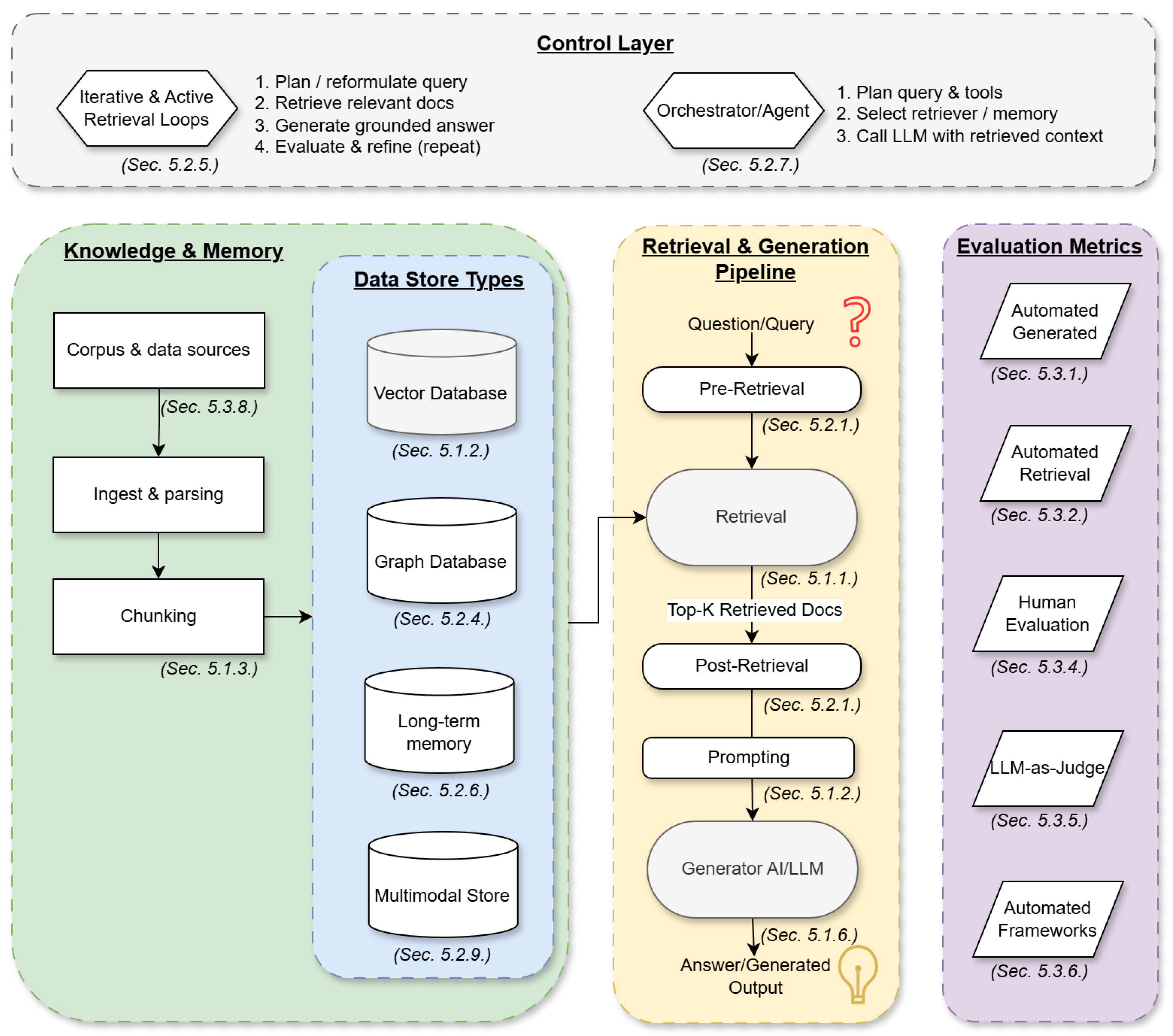 | RQ2 | What innovative methods and approaches extend the standard RAG framework? | Provides an overview of current research, assisting researchers and engineers in identifying common methodologies, existing studies, and novel approaches. |