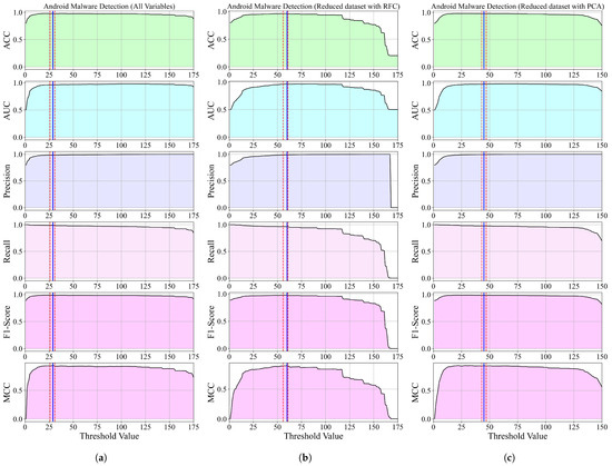 CM for TBVEs optimal threshold values (a) The CM for TBVE consists of SEs obtained on balanced dataset variations with all input variables, with optimal threshold value 29, (b) The CM for TBVE consists of SEs obtained on balanced dataset variations with a reduced number of input variables through RFC and with optimal TBVE threshold value 60, and (c) The CM for TBVE consisting of SEs obtained on balanced dataset variations with a reduced number of input variables through PCA and with optimal TBVE threshold value 45.