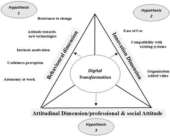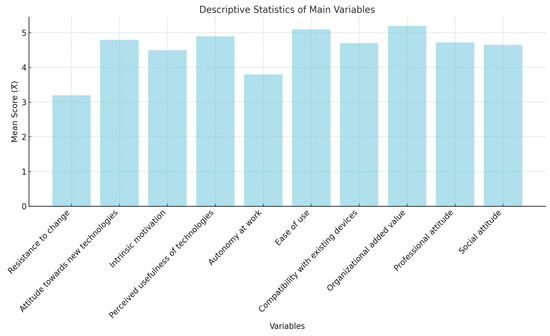 | Attitude toward new technologies | Approached via intent to use, influenced by factors such as performance expectancy | Central variable: attitude toward use determines intention to use | Linked to the notions of compatibility and relative advantage | [31,34,38,59,96,97] |