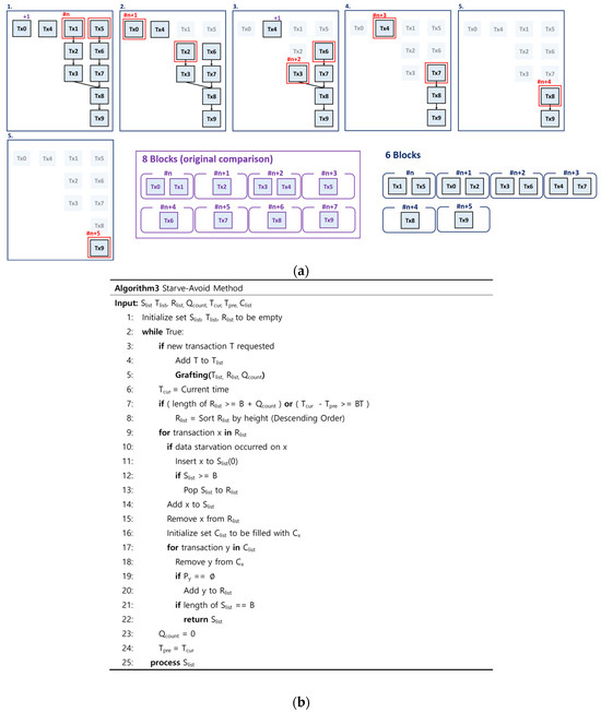 (a) An illustrative scenario of the Starve-Avoid method; and (b) Pseudocode for the Starve-Avoid method.
