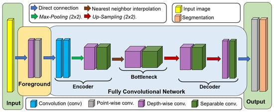 Traditional convolution layers are used in the first encoder layers due to their ability to effectively capture low-level features. On the other hand, depthwise and separable convolutions are optimized implementations of the convolution operation used in the remaining FCN layers. These approaches generate different features while significantly reducing the number of parameters [26,27].