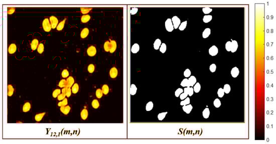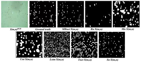 The result is shown in Figure 10. The weights computed during training are crucial for accurate segmentation. The thresholding layer separates the background from the foreground using the Otsu method [29], generating an output , as demonstrated in Figure 10. The Otsu method was selected because it has shown the ability to effectively detect biological entities in various histological and hematological studies [3].