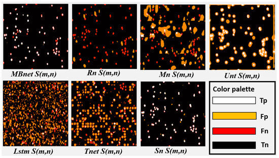 Table 10 shows that each author trained and tested their models differently when using this dataset. The authors of [32] developed a model called ResUNET, which achieved good results but was specifically trained based on the fluorescence color of the samples. The methods presented in [40] are UNet methods, with average and dispersion values reported for the F1, P, and R metrics. The approaches in [41] also generated good results, but were trained according to the spatial resolution of the input, as outlined in Table 10.