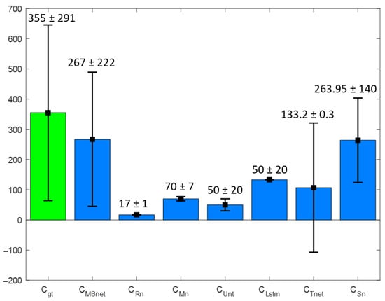 Together with the results of the cross-validation and ablation studies, the experiments developed to evaluate MBnet’s segmentation and counting abilities across the four datasets indicate that the MBnet architecture and its learning algorithm are effective for binary segmentation tasks involving cells and microorganisms. This is illustrated by the fact that MBnet outperformed all deep neural networks in detection, counting, and segmentation tasks throughout our experiments. However, MBnet does have some disadvantages. One of these is that it sometimes struggles to accurately define the perimeters of microorganisms and cells, leading to situations in which a single blob may represent multiple organisms. Additionally, MBnet can produce oversegmentation in cells that contain multiple nuclei. Despite these issues, metrics such as F1, IoU, p-value, and indicate that MBnet is well suited for detecting and counting biological entities in microscope image samples, particularly in histological, hematological, and microbiological applications. With regard to computational cost, the architecture of MBnet comprises 12 layers and 63 convolutional networks with a kernel size of , generating a significantly lower computational cost than the other networks analyzed in our experiments. This is evident in the computational cost metrics, where MBnet demonstrates significantly better inference times, image processing per minute, and energy consumption than the other networks.