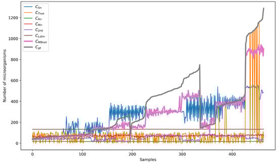 The BYSD dataset contains a database of 500 images of CA culture plates, 500 images of EC, and 500 images of SA. MBnet achieves better results than other methods in detecting and counting microorganisms. According to the p-value and results, is proportional to for the CA and SA classes. For the EC class, exhibits marginal statistical differences relative to . However, the other neural networks fail to correctly detect the microorganisms in this dataset, generating significant statistical differences between the counts of these networks and .