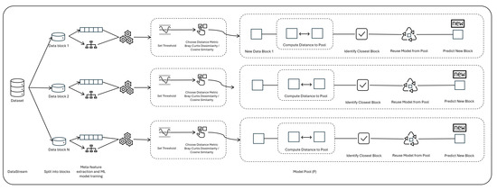 This section describes the proposed methodology for reusing machine learning models based on similarity between blocks of data, measured using the selected set of meta-features. In this process of model reuse, there are three key elements, which are described next.