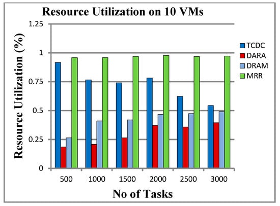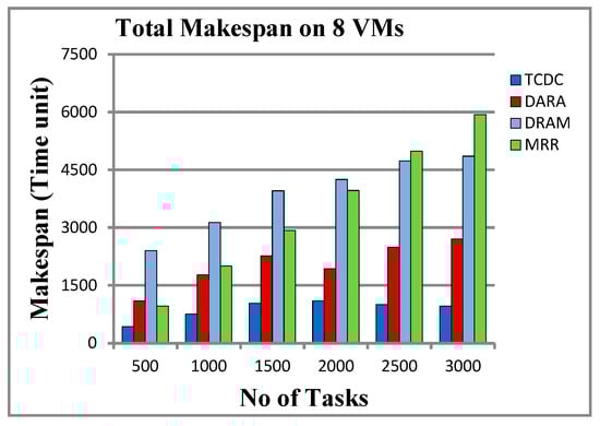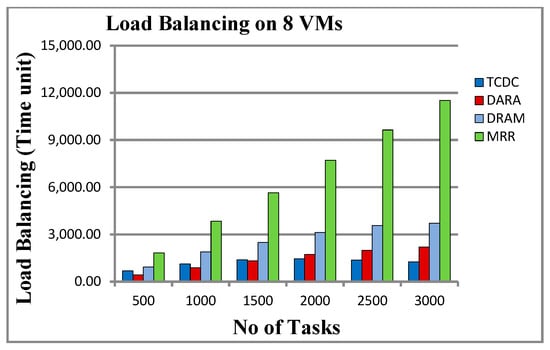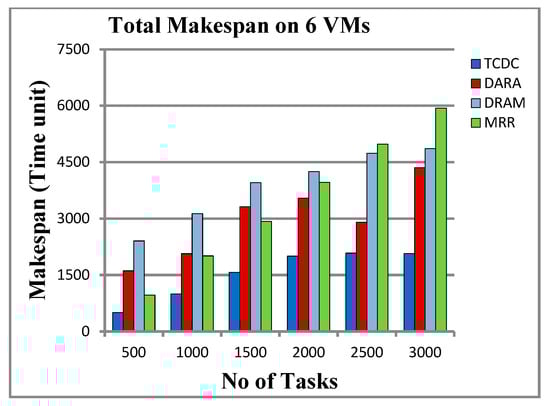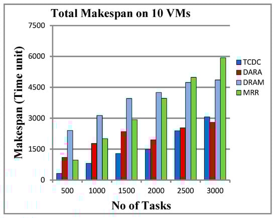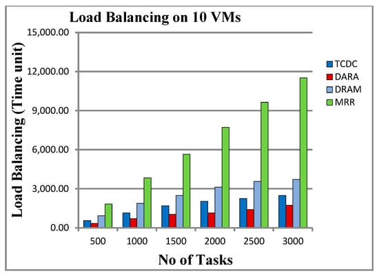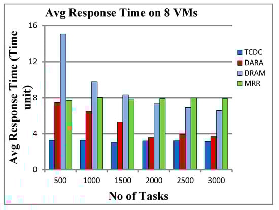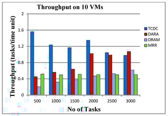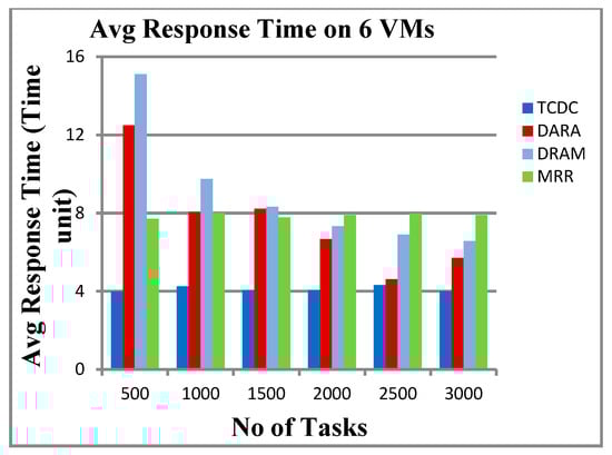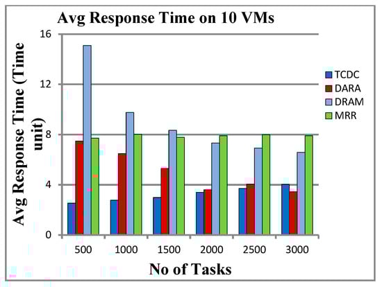 TCDC outperforms other algorithms in overall efficiency, achieving the lowest makespan and average response time across all task loads. It is highly scalable, with its makespan growing slowly as the task load increases, making it ideal for larger systems. In contrast, DARA and DRAM show deteriorating performance as the task load increases, suggesting scalability issues. MRR performs better than DARA and DRAM for small task sizes, but its efficiency drops significantly as the task load grows, making it the least effective for large loads. TCDC’s stable performance under increasing load makes it the best choice for high-demand environments focused on efficiency.
