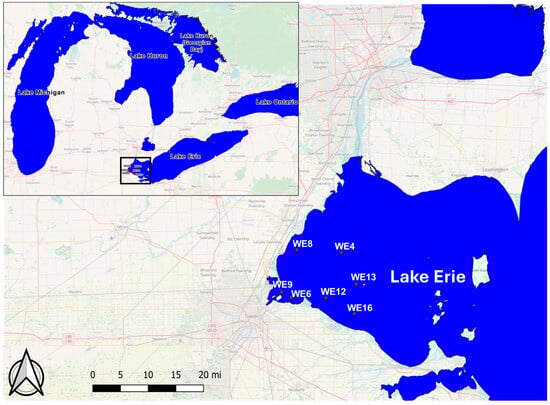 - Boegehold, A.G.; Burtner, A.M.; Camilleri, A.C.; Carter, G.; DenUyl, P.; Fanslow, D.; Semenyuk, D.F.; Godwin, C.M.; Gossiaux, D.; Johengen, T.H.; et al. Routine monitoring of western Lake Erie to track water quality changes associated with cyanobacterial harmful algal blooms. Earth Syst. Sci. Data 2023, 15, 3853–3868. [Google Scholar] [CrossRef]