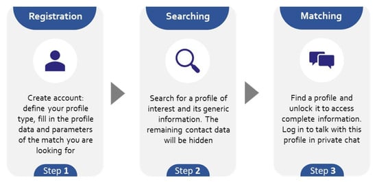 Other related works [,] have explored this multidimensional construct in terms of platform dependence, scalability and need of algorithmic governance, but not in terms of matching processes. Hence, the proposed project aims to fill some gaps in this regard, namely to integrate resources and agents more assertively to leverage innovation and the creation of high-value services. Therefore, for assertive collaboration and eventual co-creation, the platform and supporting technologies must safeguard the algorithm so that it prepares an effective matching between the stakeholders involved and their profiles/requirements. This will open various paths of their resources’ combination to nurture co-creation, co-investment, among other forms of entrepreneurship and service innovation.