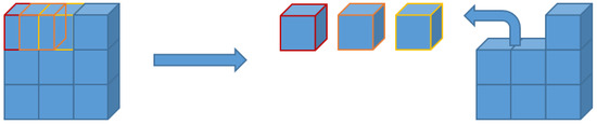 Graphical example of 3D patch segmentation with shift for a single dimension.