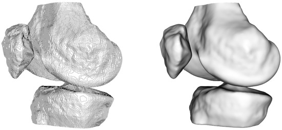 Visualization of the 3D model without (left) and with (right) smoothing.