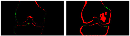 Table 2 presents the application’s performance on individual bones. Analyzing each component can provide valuable insights. The results obtained from the network are excellent, demonstrating high accuracy in segmenting various anatomical structures. Notably, the network effectively segments the patella, one of the most challenging components to isolate due to its proximity to muscles, tendons, and the knee joint capsule.