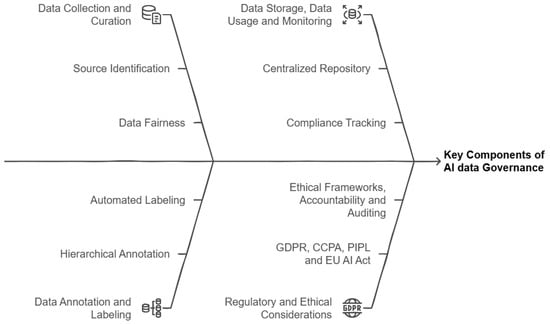 | Data-centric governance | Data quality and integrity: ensure data fairness, accuracy, and bias mitigation approach | Master data management, data encryption, and third-party data sharing policies | [78,81,86] |