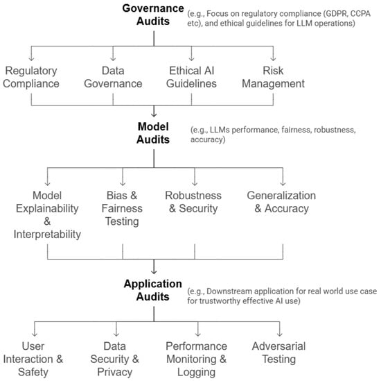 - Mökander, J.; Schuett, J.; Kirk, H.R.; Floridi, L. Auditing large language models: A three-layered approach. AI Ethics 2024, 4, 1085–1115. [Google Scholar] [CrossRef]
