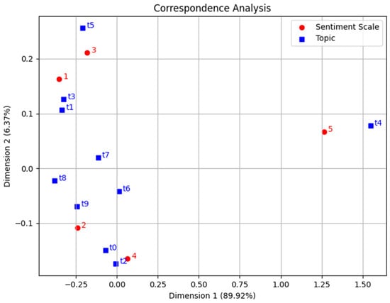 - Topic 0 had a significant positive impact on Category 2 (β = 3.618, p < 0.001; odds ratio = 37.27). This means that when users’ reviews include this topic, the probability of them expressing an emotion rated at 2 points increased significantly. This indicates that it is a strong negative topic.