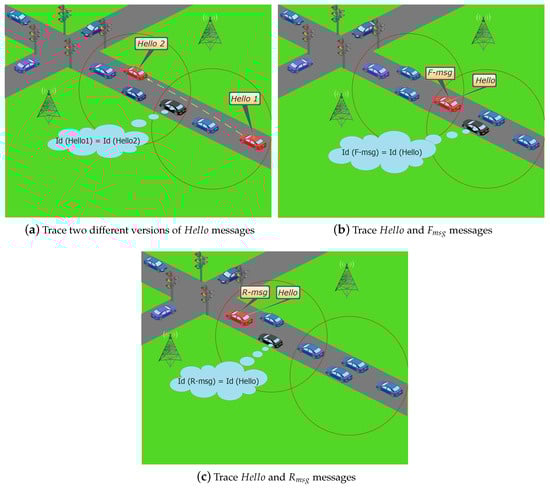 Moreover, the system randomly and regularly changes . Thus, intruder nodes can still illegally capture the encrypted messages of vehicles on the network. Moreover, they can parse and process these messages. However, they cannot retrieve the vehicle’s original identity, trace its locations, or link two different messages or the identity of their senders if they have been sent by that same vehicle.