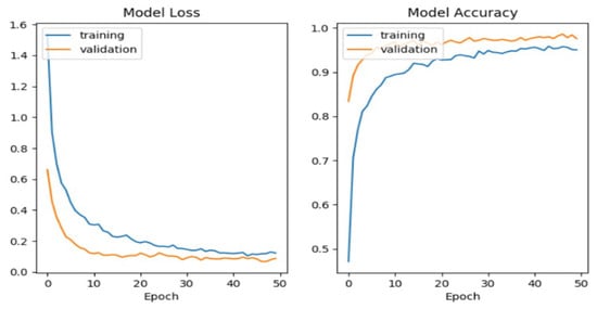 Figure 2. On both the training and validation sets, the model shows comparable performance. It implies that it has good generalization to unknown data. When training accuracy is significantly higher than validation accuracy, there is no discernible gap (overfitting). When both training and validation accuracy are low, there is no indication of underfitting. The model’s parameters are sufficient to identify patterns in the dataset without becoming overly complex and causing overfitting. If both curves converge at high accuracy (