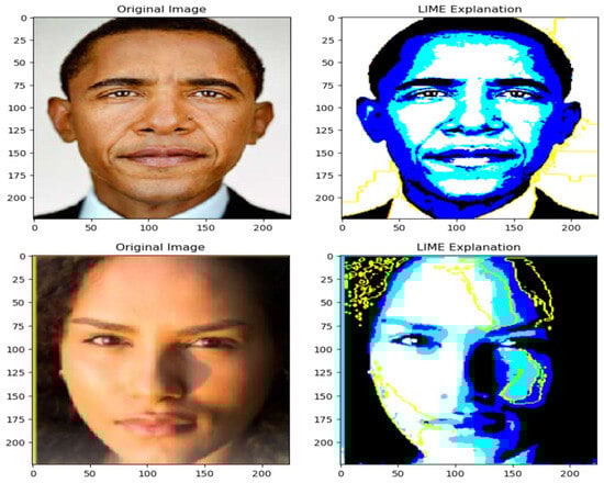 The challenge of elucidating why a deep model matches faces is known as explainable face recognition. The explainability of the suggested multi-modal CNN-RNN architecture for face recognition is assessed in this section. In order to accomplish this, we used LIME to determine which superpixels made a substantial contribution to the classification label that was produced for a particular subject. Specifically, LIME looks for places that have contributed negatively to the expected label as well as those that have contributed positively.