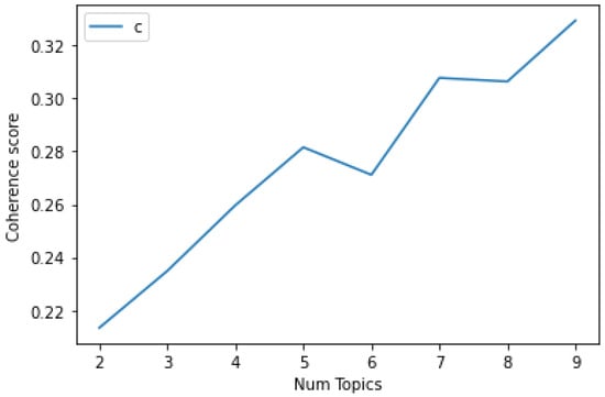 Since every text document is composed of words, topic modeling is a technique that identifies the highly related words to determine the topics of a document’s discourse []. Therefore, each document has several topics, each composed of several words.