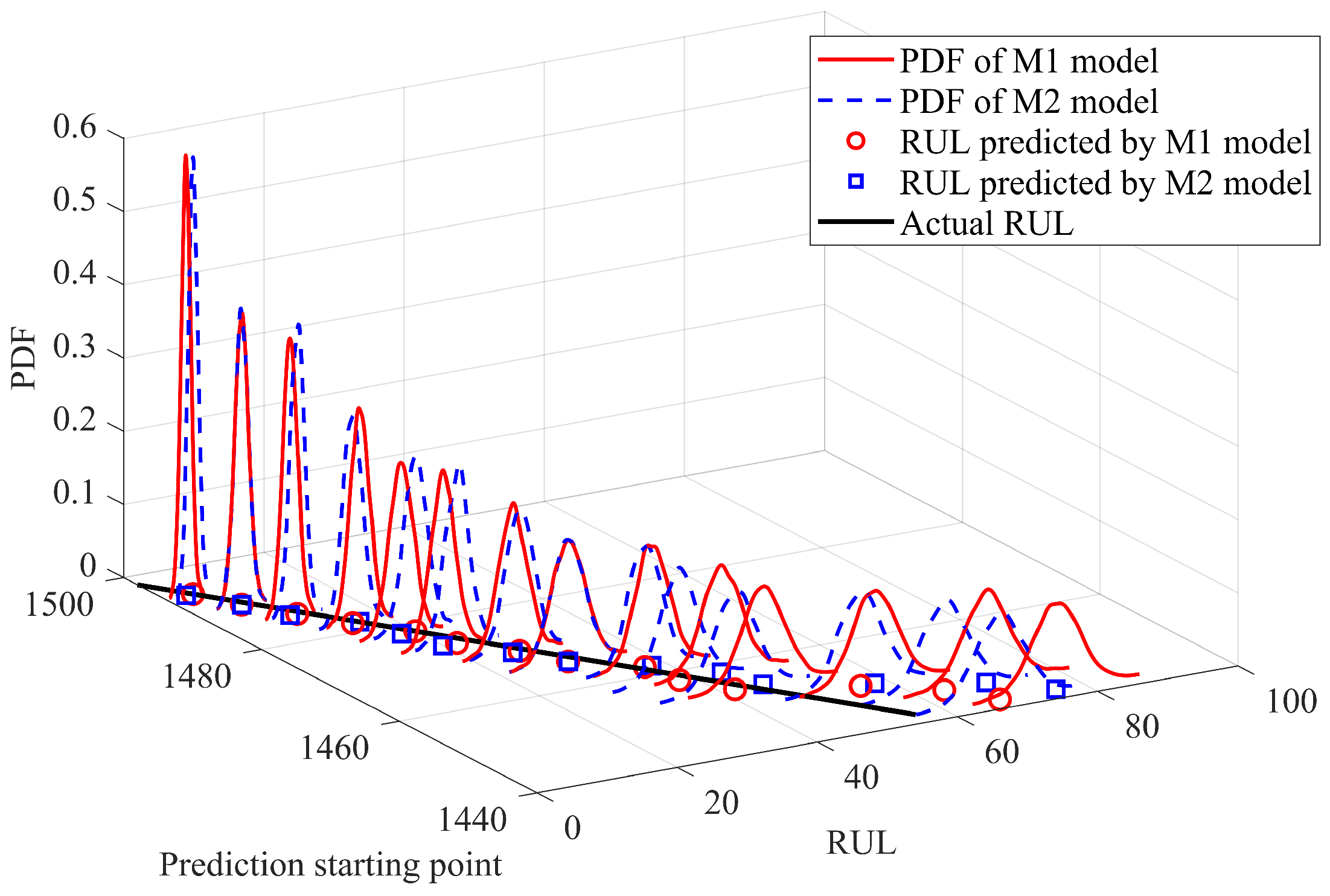- Tobon-Mejia, D.A.; Medjaher, K.; Zerhouni, N.; Tripot, G. A Data-Driven Failure Prognostics Method Based on Mixture of Gaussians Hidden Markov Models. IEEE Trans. Reliab. 2012, 61, 491–503. [Google Scholar] [CrossRef]