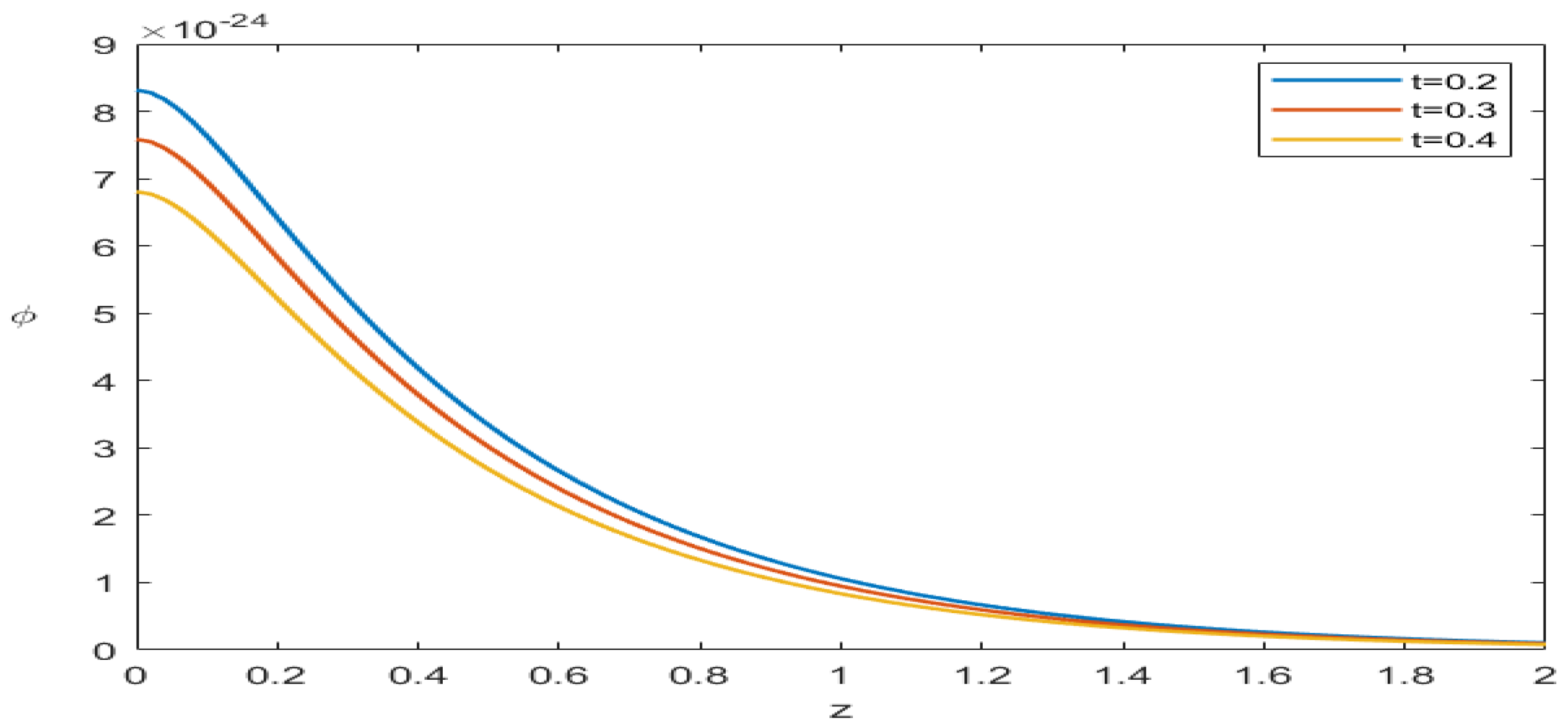 In this work, numerical computations are conducted for all physical quantity at a dimensionless time value of