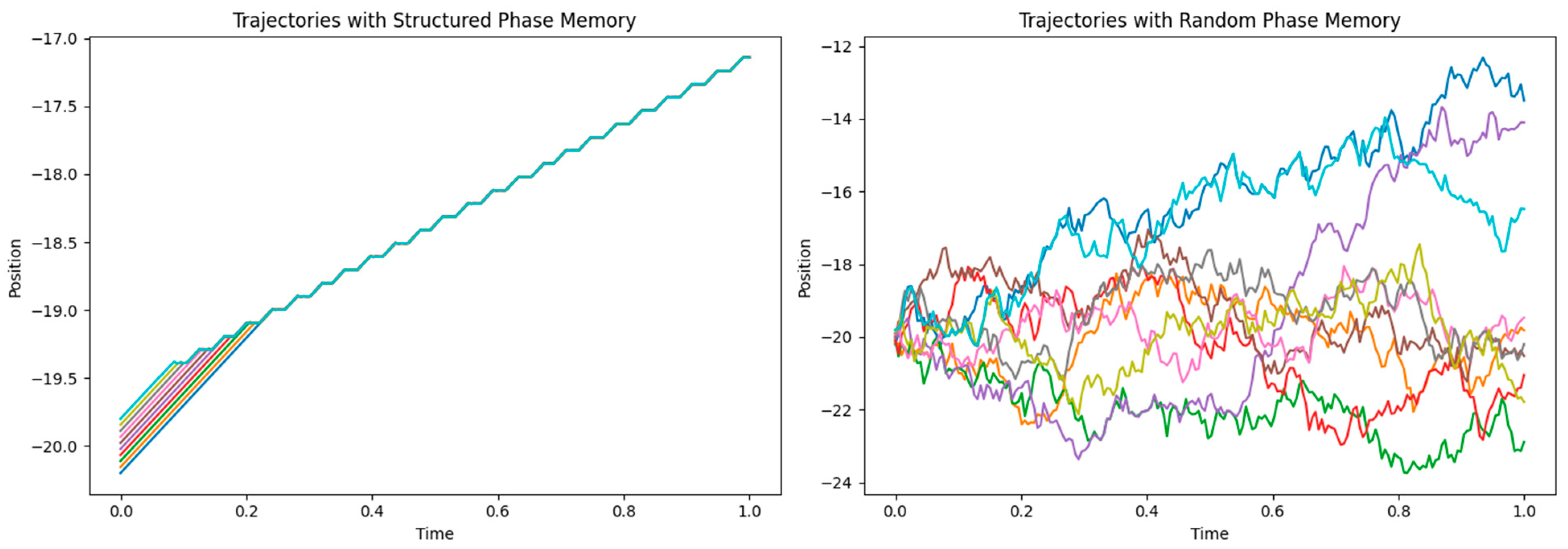 Furthermore, we have shown that when the vacuum memory field is explicitly identified with the full quantum phase of an evolving wavepacket and particles are guided according to the standard Bohmian law, all trajectories coalesce onto a single path with machine-precision agreement. This phase-memory experiment is therefore best interpreted as a numerical consistency check: it confirms that our discrete implementation of phase extraction, gradient computation, and particle advection faithfully reproduces the known Bohmian minimal-action trajectories when supplied with the exact phase field S(x,t), rather than providing a new physical mechanism for how the vacuum might dynamically acquire this phase information.