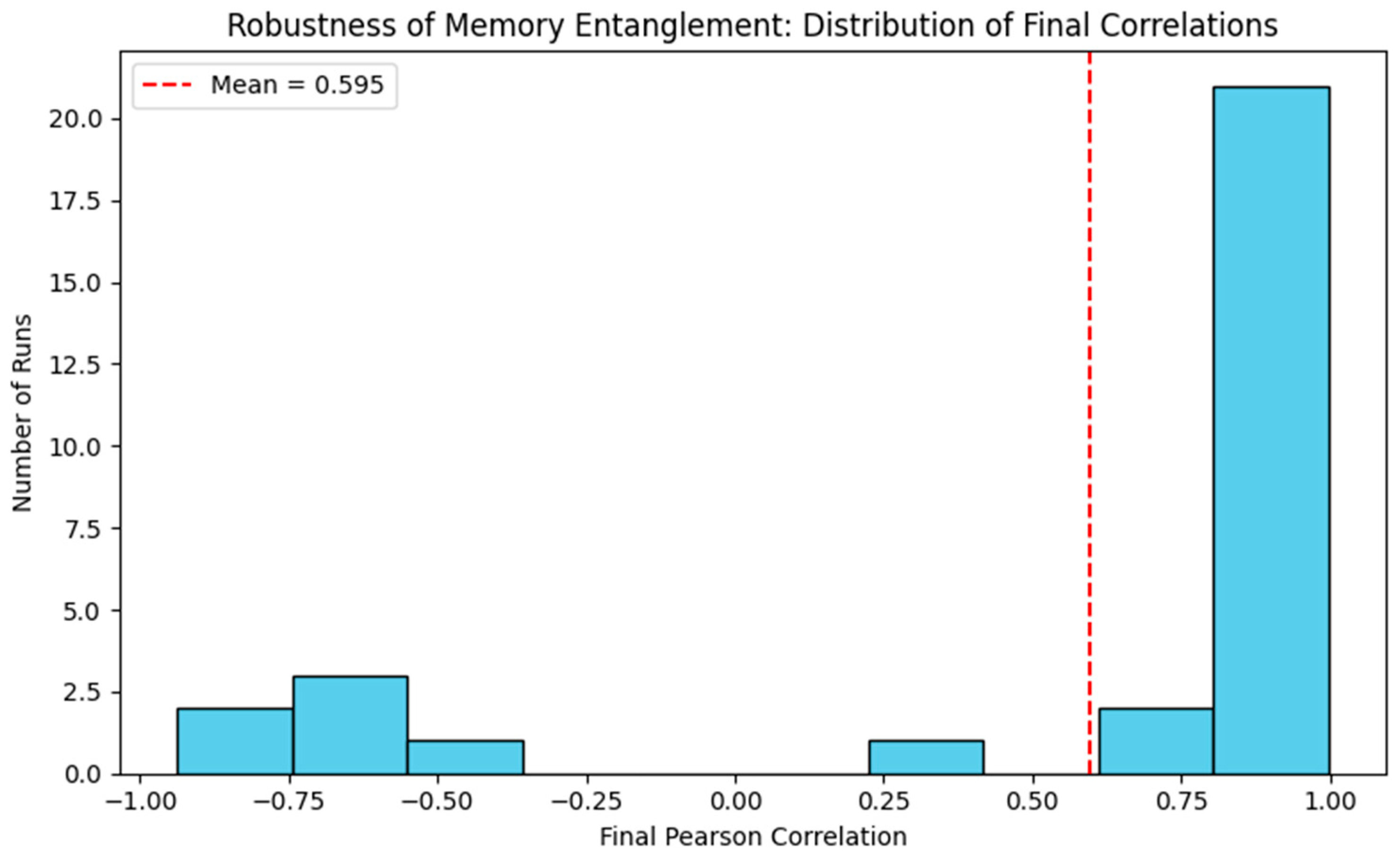 We also explored nonlocal informational synchronization using a minimal two-site memory model. Despite stochastic noise, weakly coupled memory registers consistently developed a strong correlation over time. This behavior supports the hypothesis that entanglement-like coherence in the vacuum may arise from simple coupling dynamics, without requiring classical communication or fine-tuning.