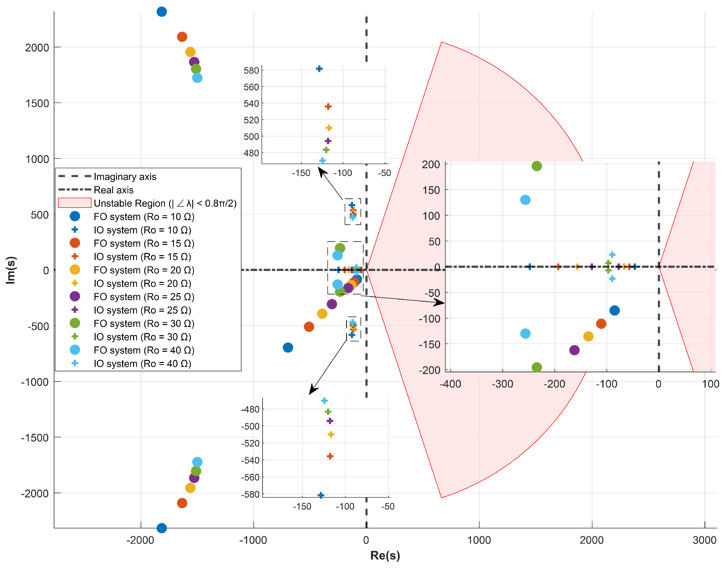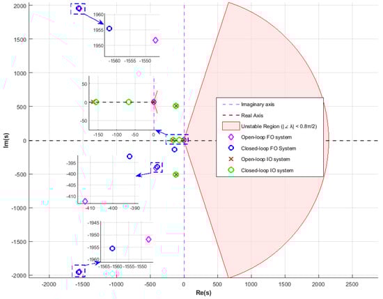 Figure 7. Root locus plots for IOLQI and FOLQI controlled systems considering fixed value of resistive load.