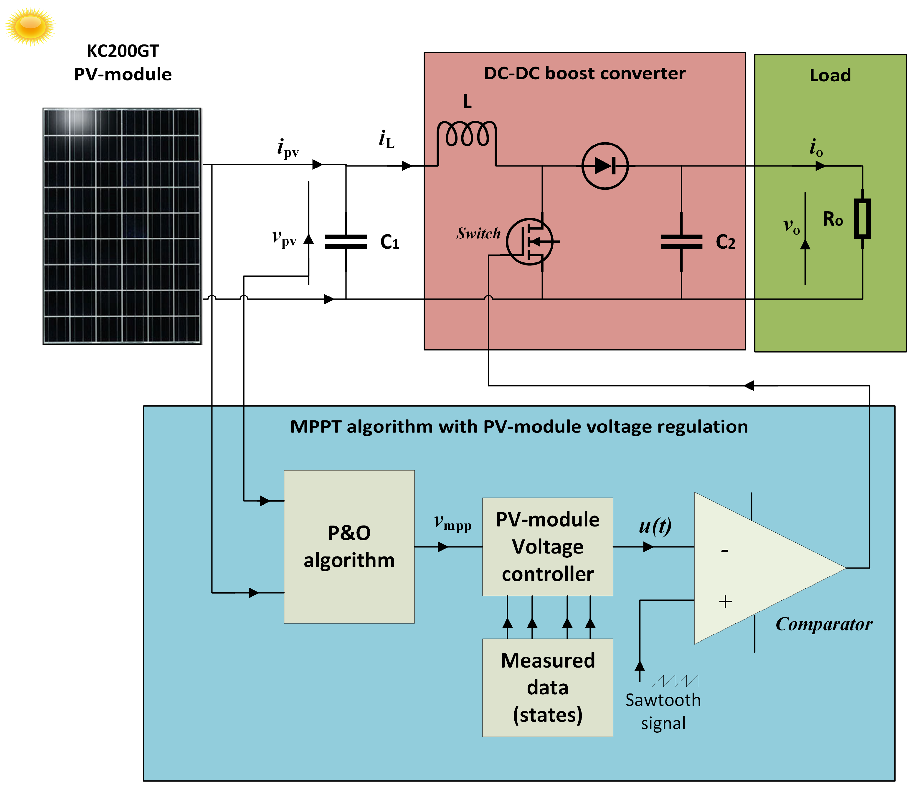 19. Bennett, T.; Zilouchian, A.; Messenger, R. Photovoltaic model and converter topology considerations for MPPT purposes. Sol. Energy 2012, 86, 2029–2040. [Google Scholar] [CrossRef]