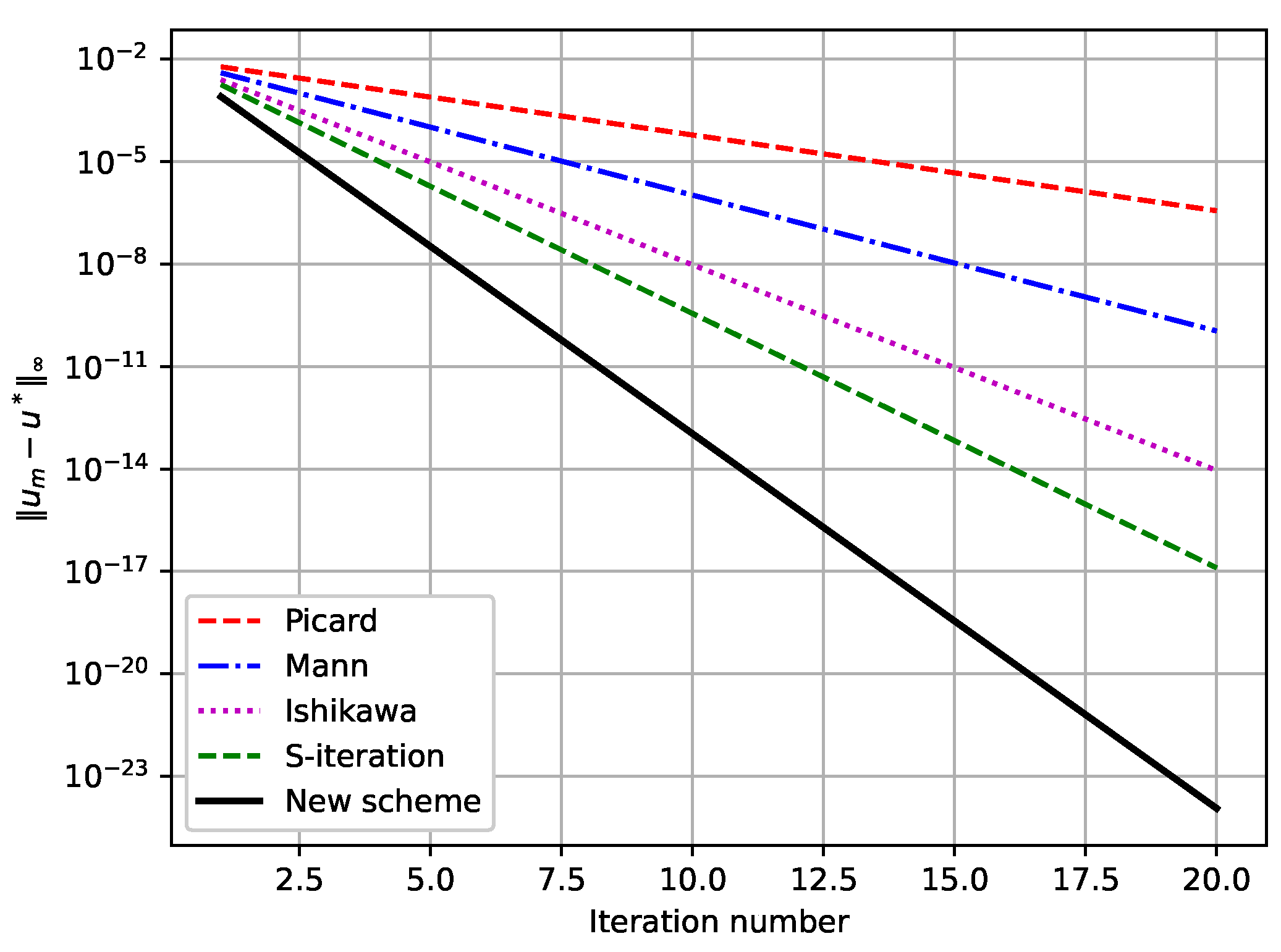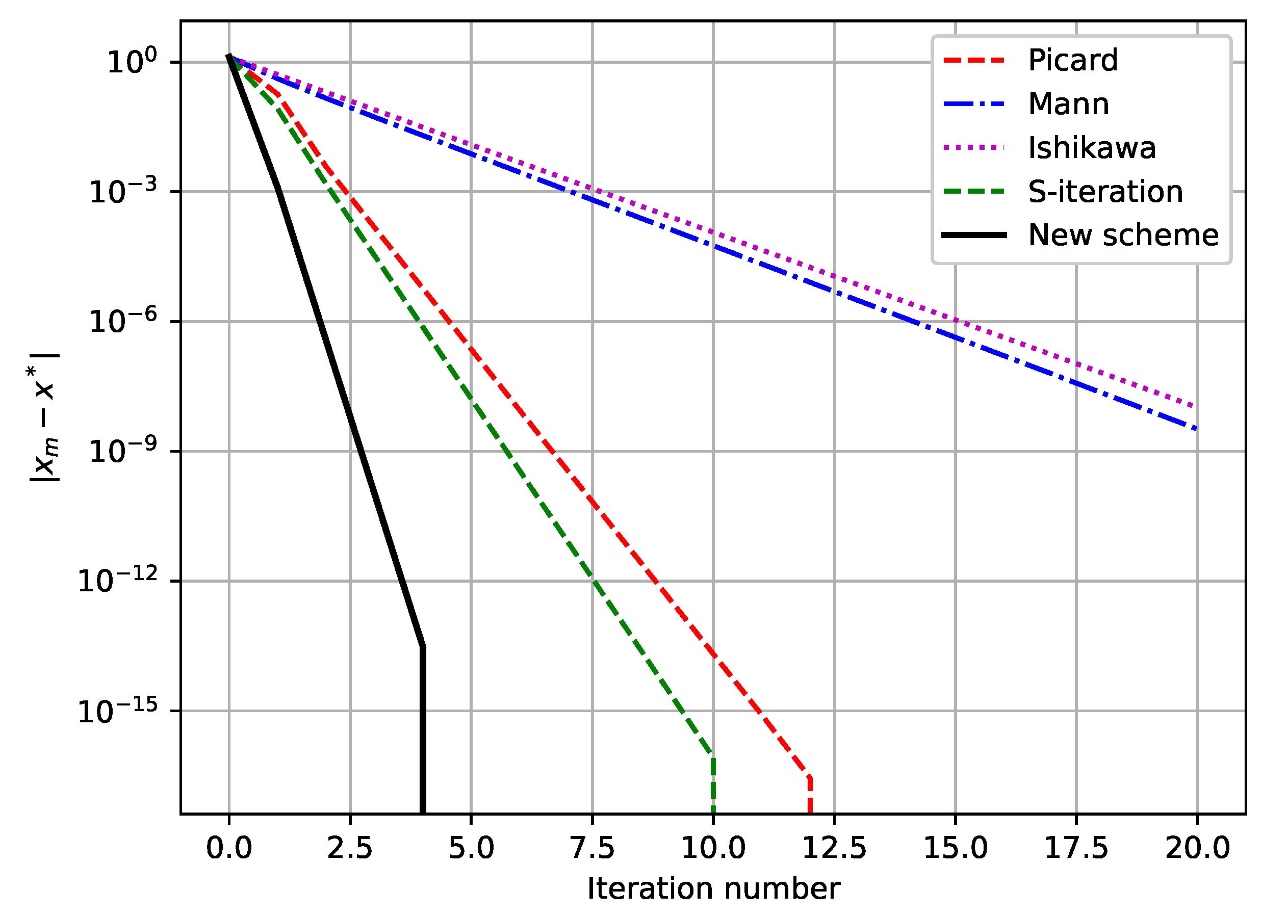 | Iteration | Picard | Mann | Ishikawa | S-Iteration | New Scheme |