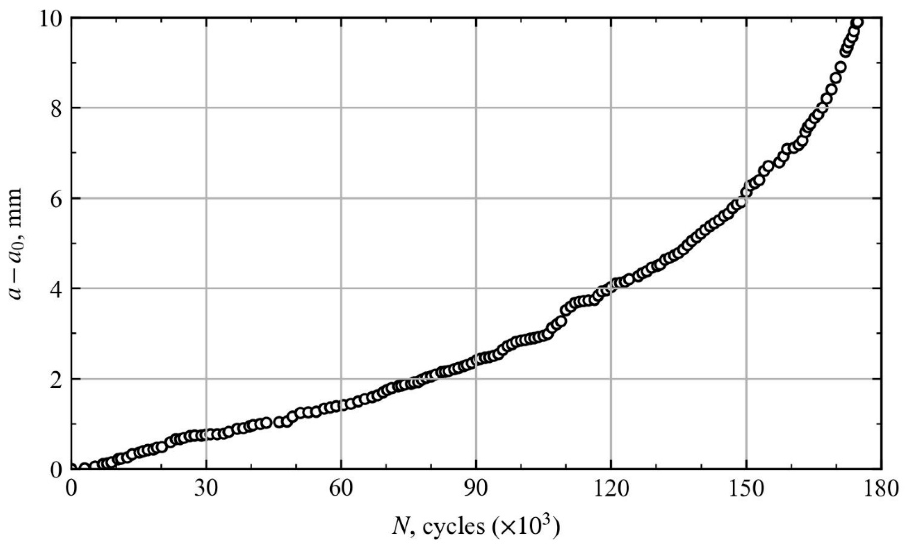 - The fatigue crack edge exhibits fractality with fractal dimensions ranging from 1.00 (Euclidean) to 1.18 along the crack length, up to 9.947 mm.
