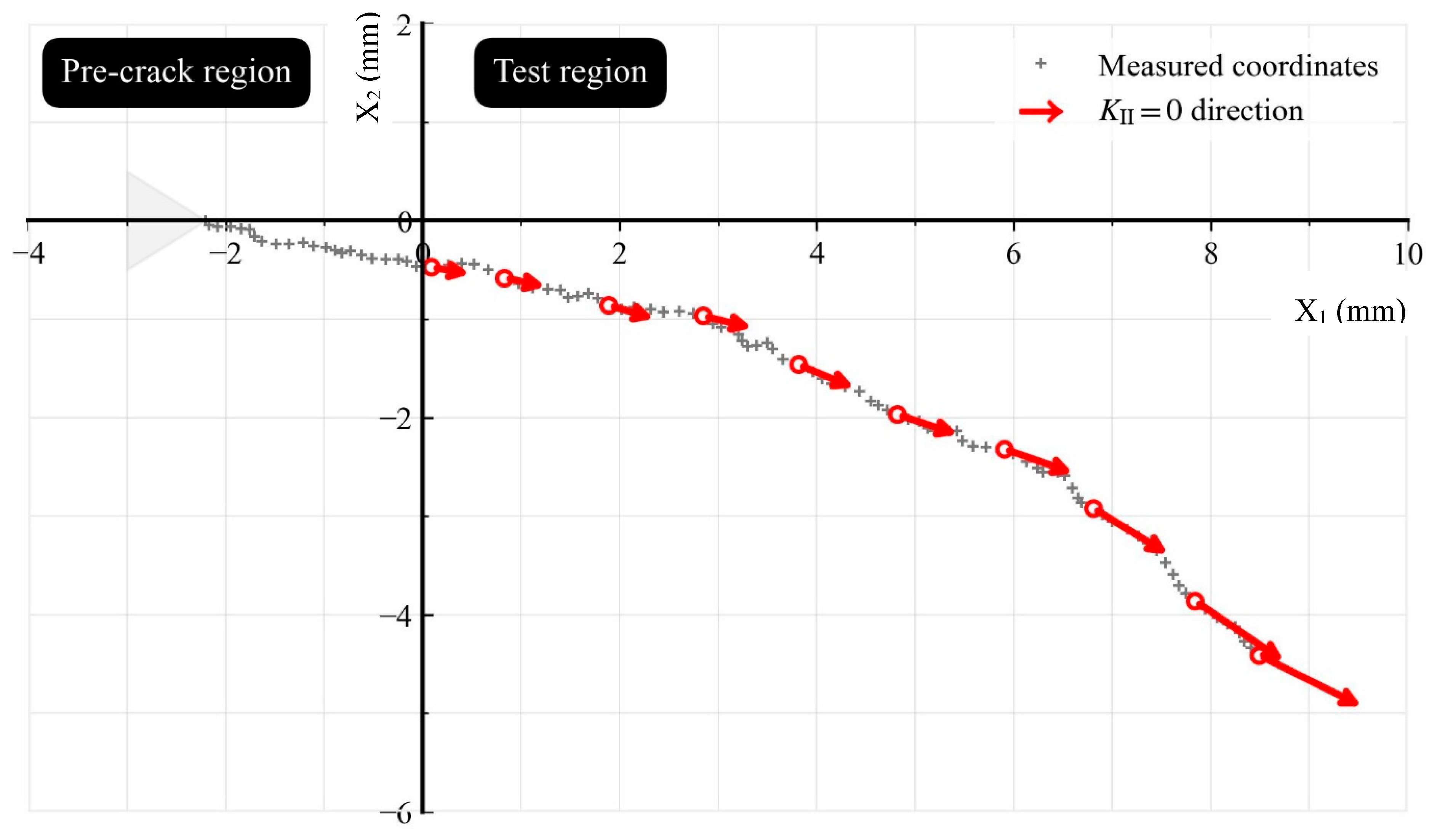 - Zhang, X.; Zhao, T.; Liu, Y.; Chen, Q.; Wang, Z.; Wang, Z. A data-driven model for predicting the mixed-mode stress intensity factors of a crack in composites. Eng. Fract. Mech. 2023, 288, 109385. [Google Scholar] [CrossRef]