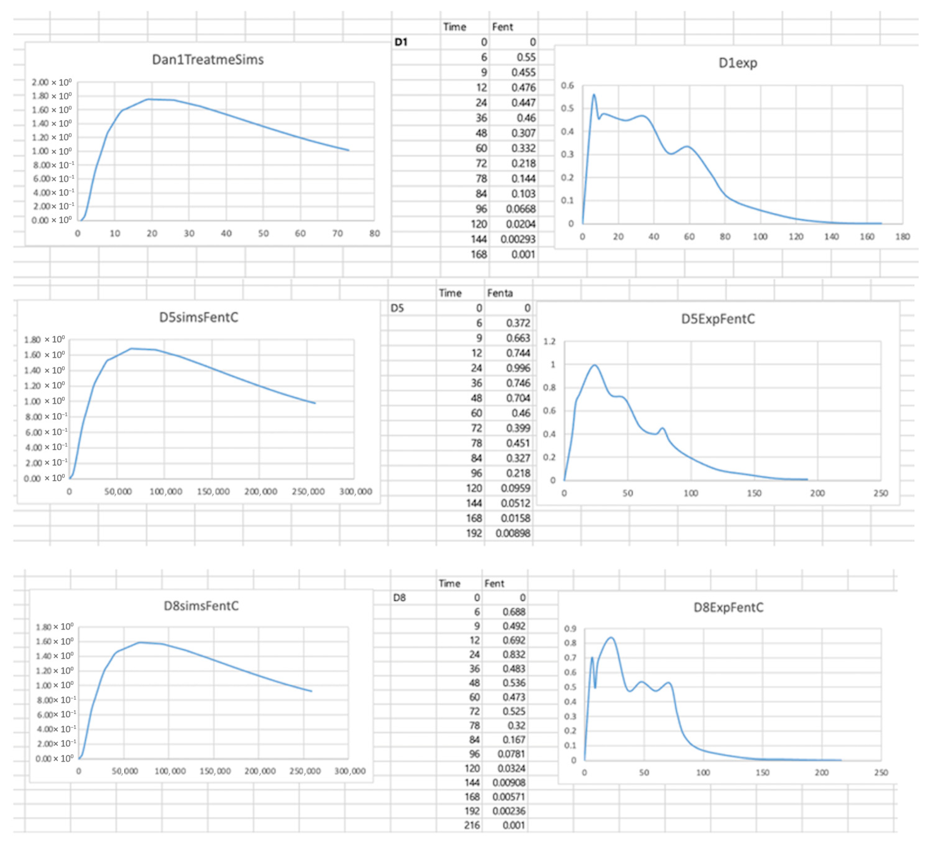 Figure 6), with all known theoretical pharmacokinetics and pharmacodynamics knowledge included in a developed simulator, the curve actually turned out to be a monotonous function, contrary to the real thing (courtesy of a colleague collecting healthy participants’ plasma samples to illustrate absorption). It demonstrated a completely different mathematical description as a quasi-oscillatory function with dampening amplitudes, vs. a DT monotonous function that was almost identical for all the patients [