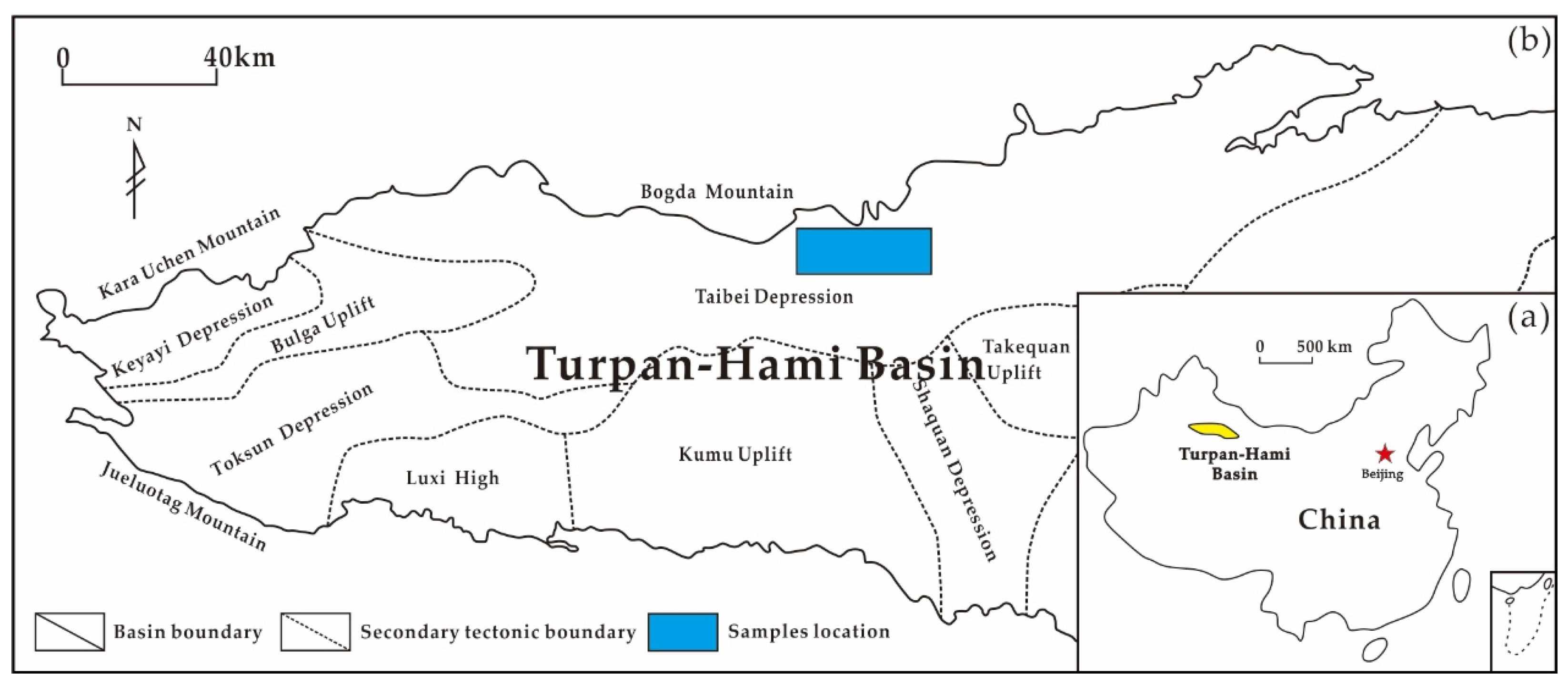 - Wang, B.; Huang, Z.; Xiao, D.; Yu, H.; Zeng, W.; Wang, X.; Qu, T.; Li, Z.; Yang, Y. Generation and expulsion of Lower Jurassic hydrocarbon in different source rocks in the Taibei Sag, Turpan-Hami Basin, northwest China. J. Asian Earth Sci. 2024, 259, 105911. [Google Scholar] [CrossRef]