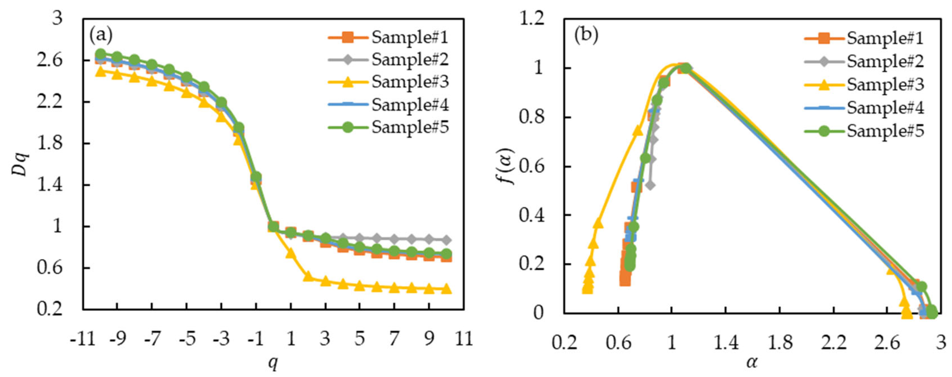 4.1. Relationship Between Multifractal Parameters and Percolation Capacity