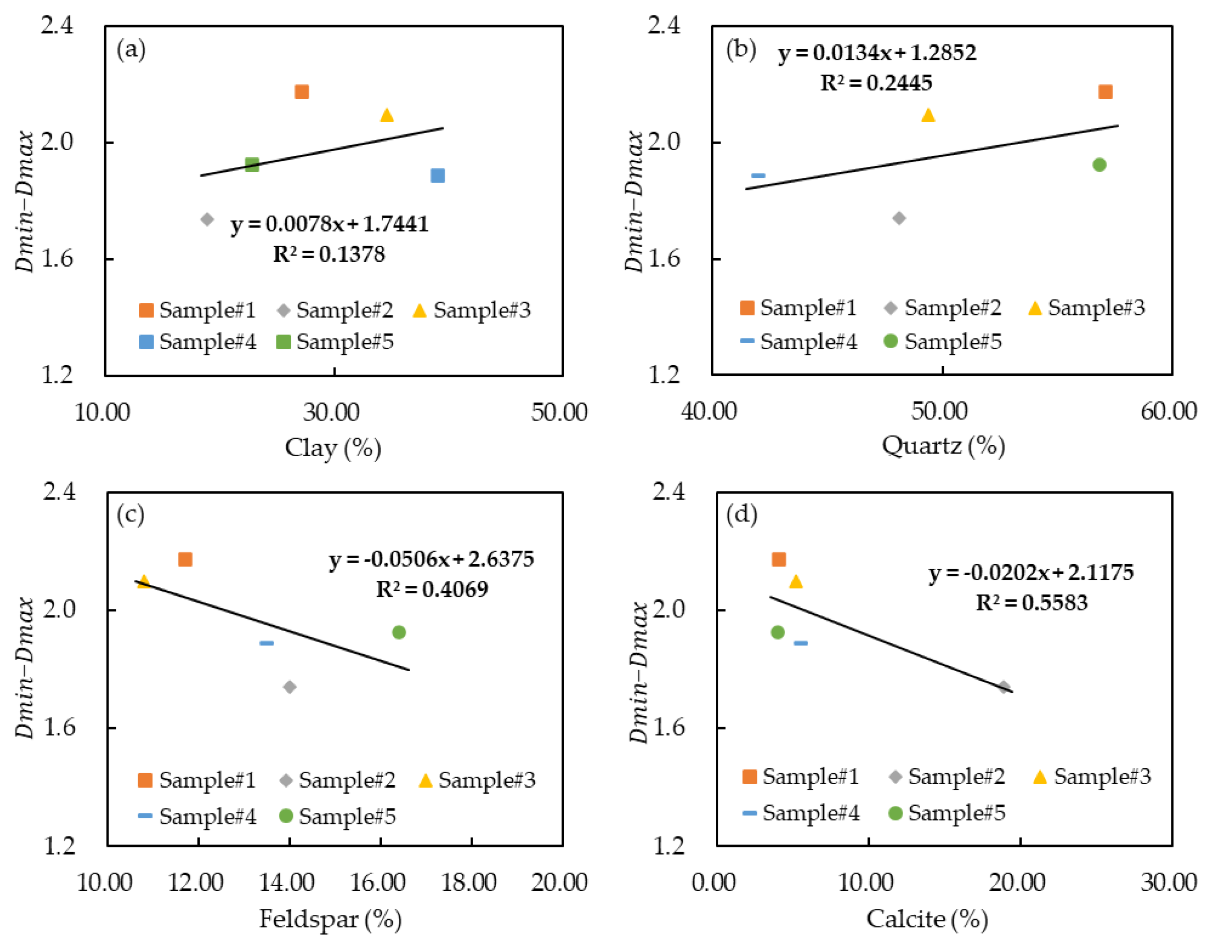 4.2. Relationship Between Multifractal Parameters and Mineral Compositions