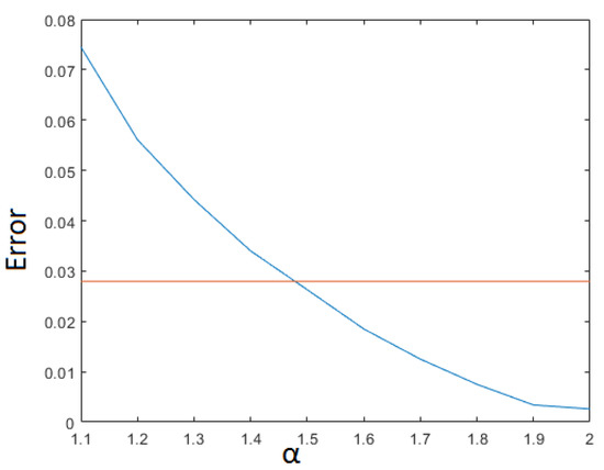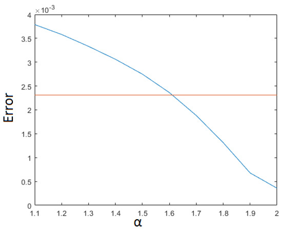 In Figure 8, the error is plotted as a function of , for a fixed value of ().