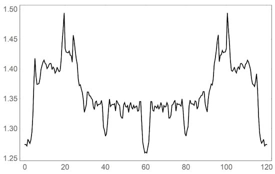 As mentioned earlier, the modified Hausdorff dimension employed throughout the work took about 4 or 5 h to complete. The timing of these two calculations were performed for primarily , and an image resolution of 1.5 million pixels (or data points in the case of text files). However, computational time is largely dependent on N and j values as well as pixel count. The authors found that the primarily used values offered the best compromise between image quality and computation time.