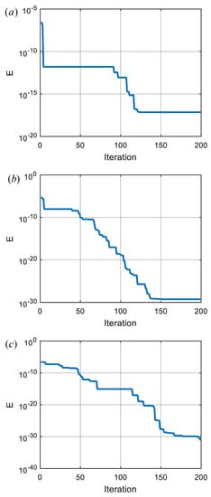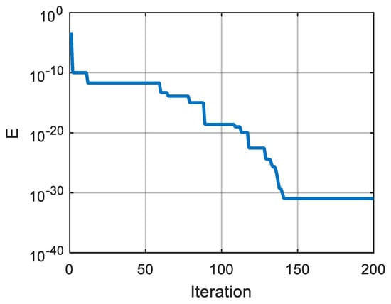 For 200 iterations of the optimization process, a decrease of the minimum angle error is shown in Figure 5. The figure clearly demonstrates that the PSO algorithm can significantly decrease SAE during the optimization process. This result confirms that the problem can be solved by the PSO algorithm.