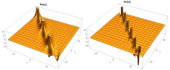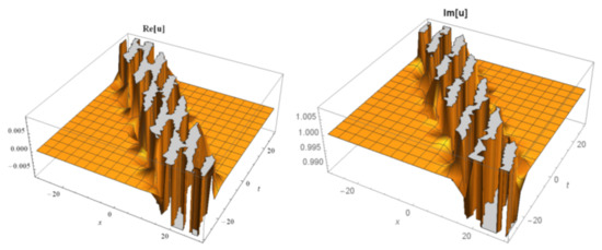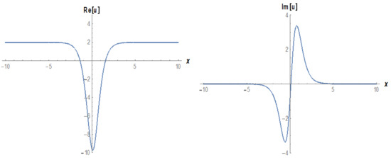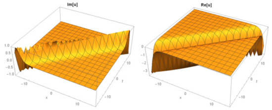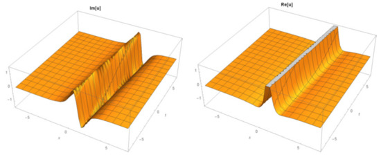 In the physical sense, if we consider the solution of being Equation (32), this is a complex mixed dark soliton solution for the governing model. Such reported results in this manuscript have some important properties. To illustrate this, the hyperbolic tangent (dark soliton) arises in the calculation of magnetic moment and rapidity of special relativity [50]. In this regard, it is estimated that this solution may help to better understanding of the meaning of MAE physically.