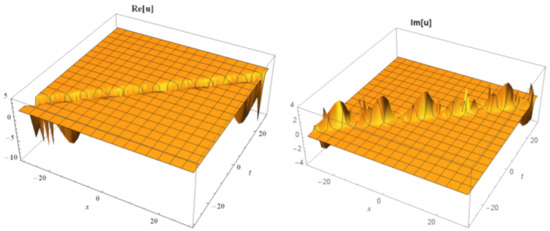 in which . By getting the necessary derivations of Equation (33) for Equation (10), we report more new complex and rational wave solutions to the MAE, which these solutions produced by BSEFM. In this regard, this projected technique is a powerful tool for obtaining new analytical solutions for the nonlinear partial differential equations.