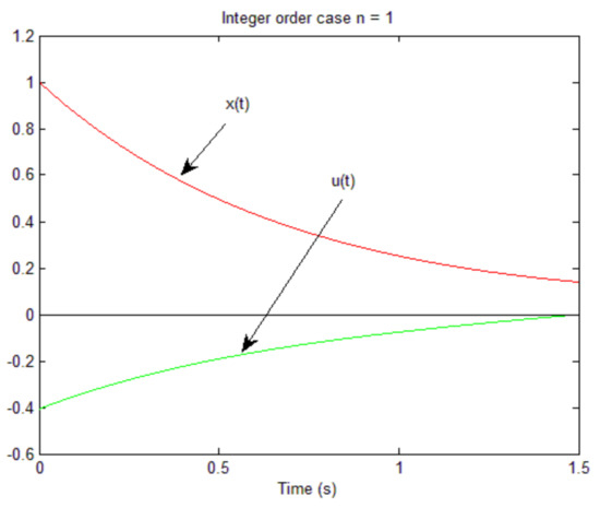 In order to compare the fractional optimal control to the integer order one, Figure 2 presents the graphs of and for ().