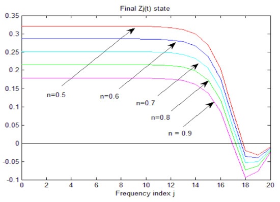 As noted previously, the objective of fractional optimal control is to really control all the components of . Since the optimal solution is obtained with Equation (76), we have also to compute all the components of the adjoint system.