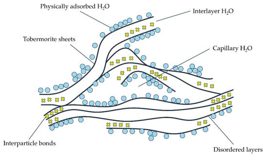 - Richardson, I.G. Tobermorite/jennite- and tobermorite/calcium hydroxide-based models for the structure of C-S-H: Applicability to hardened pastes of tricalcium silicate, β-dicalcium silicate, Portland cement, and blends of Portland cement with blast-furnace slag, metakaolin, or silica fume. Cem. Concr. Res. 2004, 34, 1733–1777. [Google Scholar] [CrossRef]