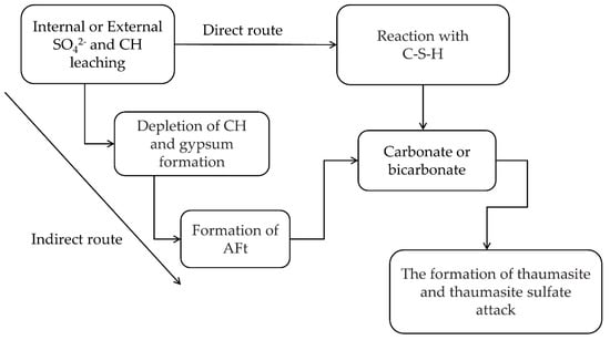 - Bellmann, F.; Stark, J. The role of calcium hydroxide in the formation of thaumasite. Cem. Concr. Res. 2008, 38, 1154–1161. [Google Scholar] [CrossRef]