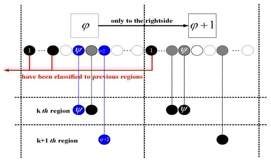 - Travel all in the range to get a set K based on the following rule: if in which , the point is abandoned. Otherwise, . The number of points in K is defined as .