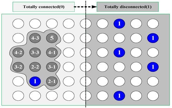 - A criterion is designed to map the connectivity degree to the range of . In this way, the quantification of connectivity degree is effectively achieved.