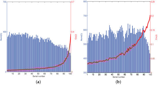 In order to visualize the changing rule of and , Figure 7 shows the curve and bar graph of the whole 100 points.