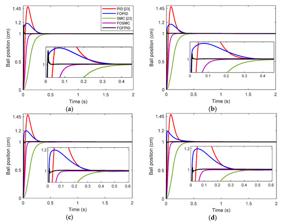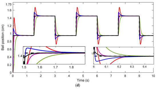 Comparison of Maglev response with different controllers based on (a), (b), (c), and (d).