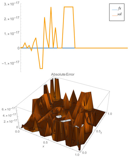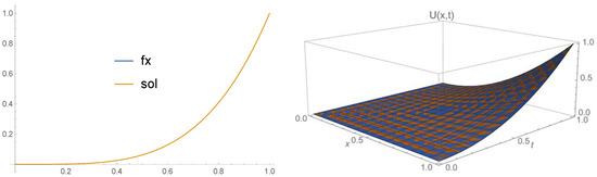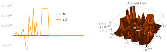 fx) and the exact solution (sol) of Equation (18), we essentially found overlays of graphs shown on the left-hand side of